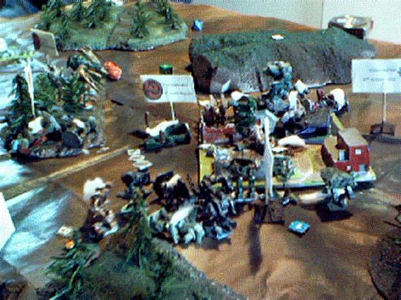 In the town the Command Lance took a heavy pounding, loosing all but the CO's Mech. Then as it tried to make a run for the woods, it was taken down to (above right).
