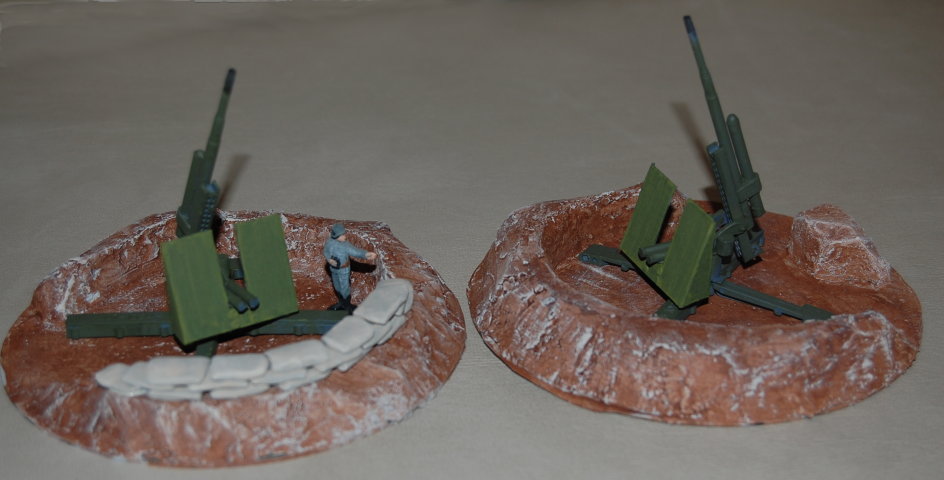As these were made for a scenario, I also constructed two prepared emplacements for them, one with sandbags made out of sculpy.