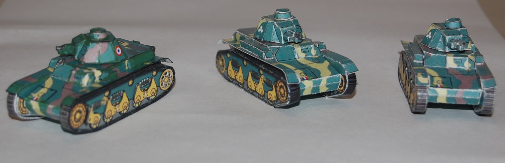 French tanks are not so common in war games so the models tend to be more expensive. Although they are available in both metal and plastic, both seem to retail for $15 dollars per tank. Thus I had plenty of incentive to design a paper model. After making sure they were not available from another designer, I set out to make a model.